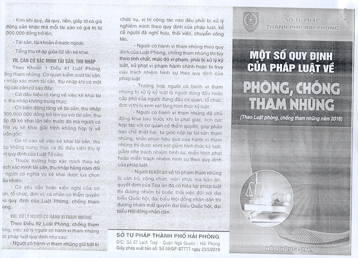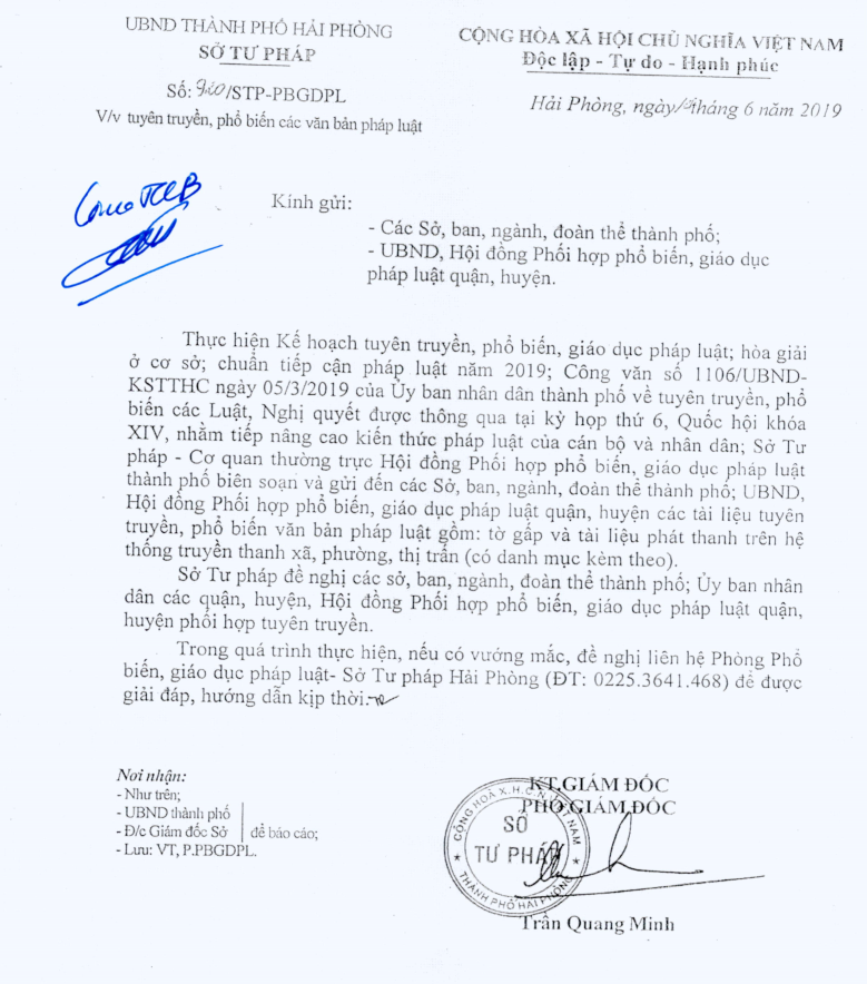 Thực hiện Kế hoạch tuyên truyền, phổ biến, giáo dục pháp luật; hòa giải ở cơ sở; chuẩn tiếp cận pháp luật năm 2019; Công văn số 1106/UBND-KSTTHC ngày 05/3/2019 của Ủy ban nhân dân thành phố về tuyên truyền, phổ biến các Luật, Nghị quyết được thông qua tại kỳ họp thứ 6, Quốc hội khóa XIV, nhằm tiếp nâng cao kiến thức pháp luật của cán bộ và nhân dân; Sở Tư pháp - Cơ quan thường trực Hội đồng Phối hợp phổ biến, giáo dục pháp luật thành phố biên soạn và gửi đến các Sở, ban, ngành, đoàn thể thành phố; UBND, Hội đồng Phối hợp phổ biến, giáo dục pháp luật quận, huyện các tài liệu tuyên truyền, phổ biến văn bản pháp luật gồm: tờ gấp và tài liệu phát thanh trên hệ thống truyền thanh xã, phường, thị trấn.